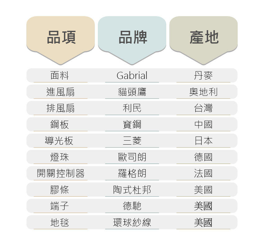 採用國際知名品牌 品質保證 安全放心